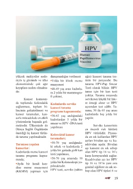 sorunu olup gündemdeki yerini korumaktadır. Sebe- mında; •50-70 yaş arasında 10 Kuadrivalan aşı ise HPV